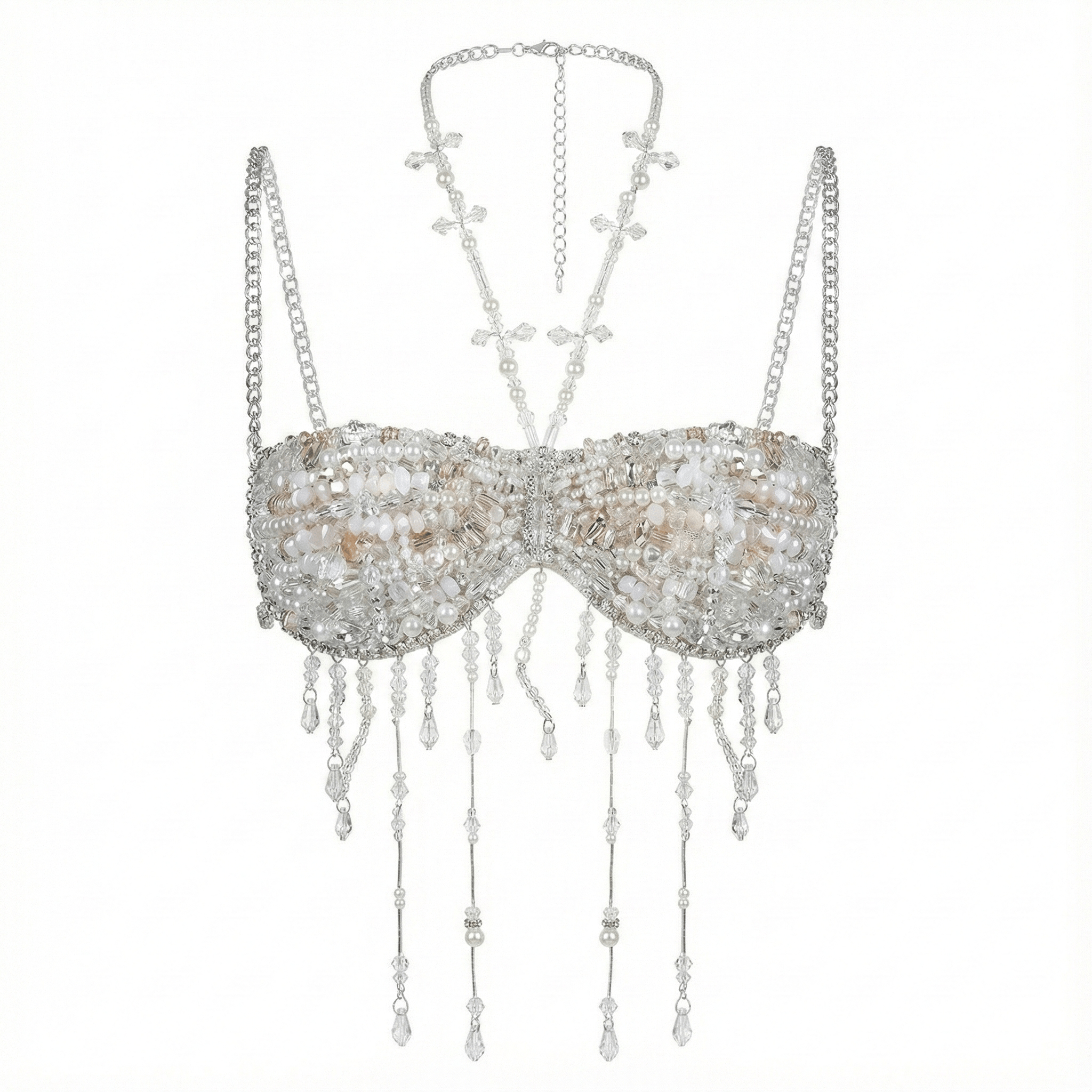 Aurora Clear Beaded Backless Carnival Top